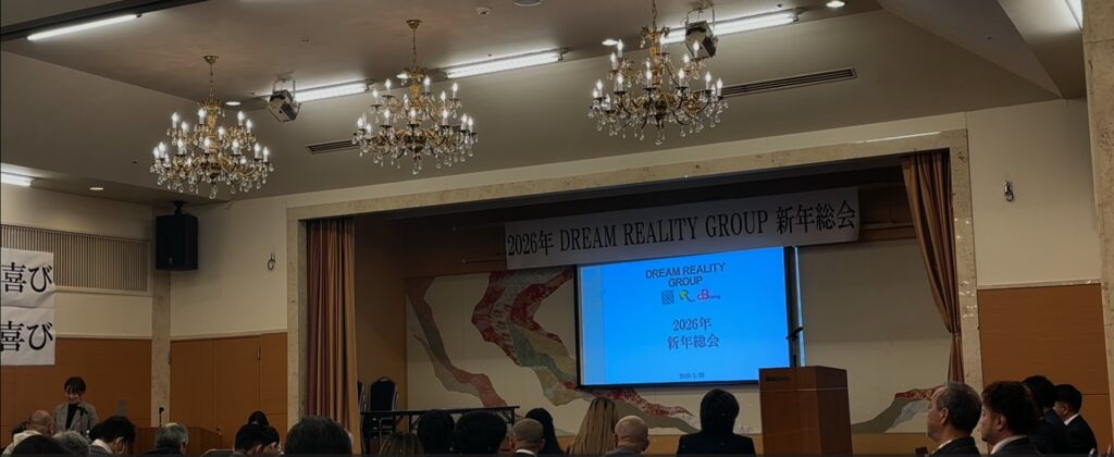 DREAM REALITY GROUPでは、毎年1月にその年の会社方針を共有し新たな目的・目標にベクトルを合わせる新年総会を実施しています。1月19日に年間テーマや新たに掲げた企業理念の基礎となるMVVS(Mission Vision Value Spirit)をグループ社員に向けて発表しました。「今日より明るい大阪を創る」ために邁進してまいります。